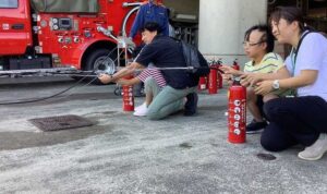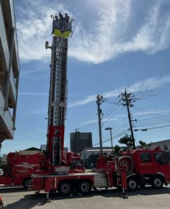 小学部6年は、9月24日(水)に富山市消防局に行きました。水消火器を使った消火体験、はしご車の乗車体験、消防士さんにインタビュー、防火衣を着る体験などの活動を行いました。
