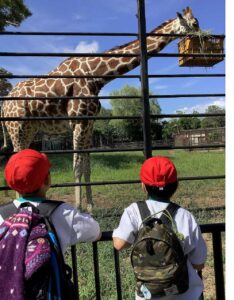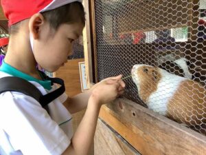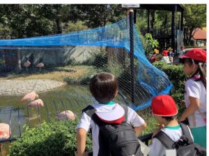 モルモットと触れ合ったり、キリンやフラミンゴ、やぎを見たりして、楽しく過ごしました。
