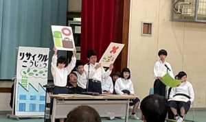 10月24日(金)に中学部学習発表会が行われました。1年生は「レッツ・防災~そなえて安心・まもろう命」、2年生は「レッツ・エコ~ごみを減らそう~」と題し、それぞれ総合的な学習の時間で学んだことを発表しました。 3年生は作業製品販売に取り組み、保護者の方々や先生方に製品を購入していただきました。