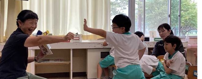 9月25日(木)に図書館司書による読み聞かせがありました。「さつまのおいも」「こちょこちょこちょ」などの本を読んでもらいました。 …