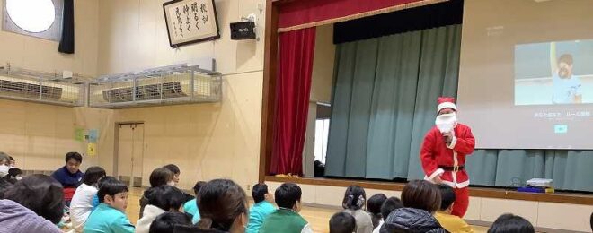 12月22日(月)に小学部でクリスマス集会を行いました。ゲーム「おちたおちた」、「グーチョキパーでクリスマス」や歌「ゆきだるまのチャチャチャ」、ダンス「みんなともだち」、図書委員会による絵本の読み聞かせ「へんしんトンネル」を実施しました。 …