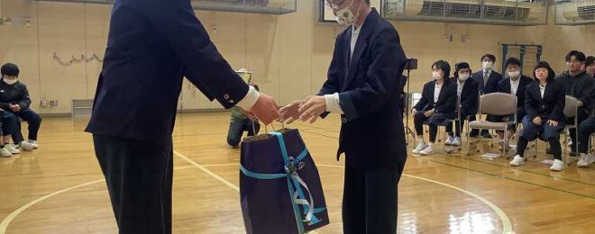 2月26日(木)に中学部の卒業生を送る会がありました。3年生へ感謝の気持ちを込めて1、2年生が「しらとりクイズ」などの出し物を披露したり、プレゼントを贈呈したりしました。3年生からはお礼に1、2年生へエールが送られました。全員で歌「大切なもの」を歌いました。 …